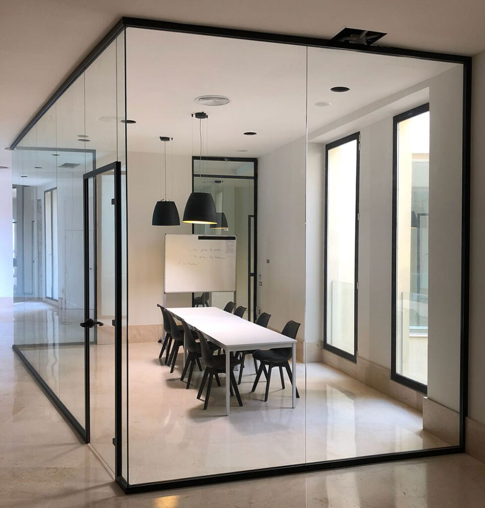 Ofrecemos mamparas de PVC y de aluminio. Ambas son una opción elegante y funcional para separar espacios.